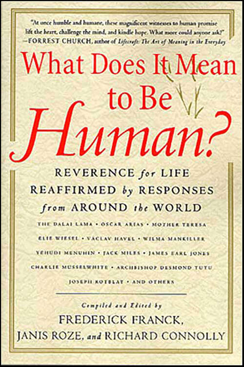 - In an inspirational act of faith and hope, nearly one hundred contributors--social activists, thinkers, artists and spiritual leaders--reflect with poignant candor on our shared human condition and attempt to define a core set of human values in our rapidly changing socity. Contributors include:* The Dalai Lama* Wilma Mankiller* Oscar Arias* Jimmy Carter* Cornel West * Jack Miles* Mother Teresa* Nancy Willard* Elie Wiesel* James Earl Jones* Joan Chittister * Mary Evelyn Tucker* Vaclav Havel* Archbishop Desmund TutuWhat Does It Mean To Be Human? is a vital meditation on the endless possibilities of our humanity.